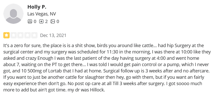 Here is the list of doctors at Nevada Orthopedic, and their photos are shown in the next column. The main orthopedic surgeon on this website is Dr. Michael Bradford, but we are providing details and a few patient stories about his partners at Nevada Orthopedic & Spine Center. The online reviews show a long-term, systemic problem of bad behavior, poor management of scheduling, abysmal communication efforts, rude and dismissive behavior, lack of compassion and concern for the suffering of their patients, and the list goes on.