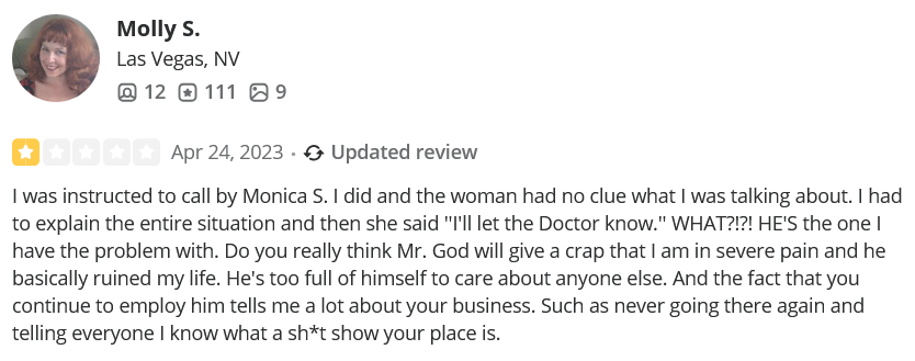 - Michael Rossidis (only 4 reviews on Yelp after 9 years as a doctor)