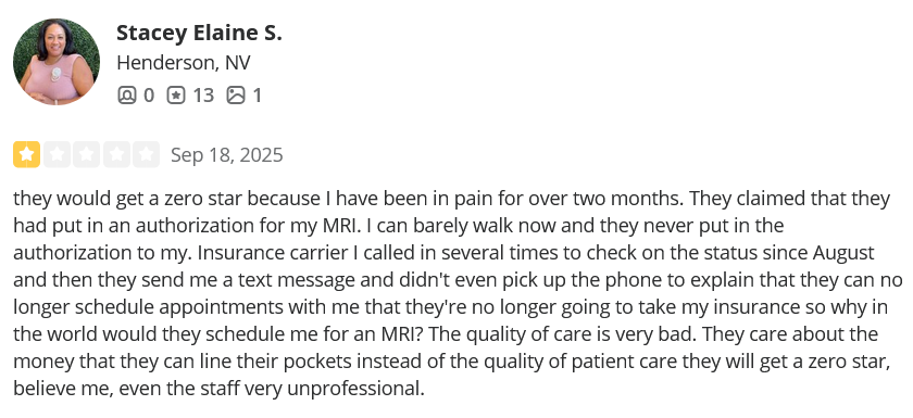 Beware of Nevada Orthopedic & Spine Center which includes Dr. Michael Bradford and his partners. The office and the individual doctors have low ratings and a lot of negative reviews.